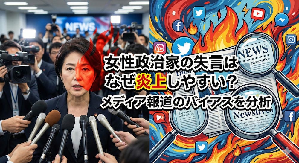 女性政治家の失言が炎上しやすい背景には、メディア報道に潜む根深いジェンダーバイアスと、それを受け入れてしまう社会の構造的な問題があります。